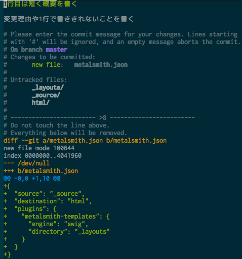 ↑ git commit -v ではこんなイメージになります。僕はこんな感じでやってます。