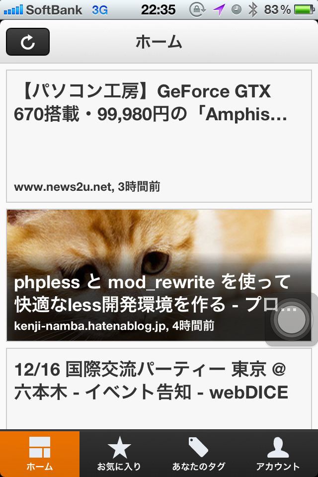 こちらもSmart Newsと同じく、twitterなどのソーシャルサービスから、データを取得し話題の情報を取ってくる仕組みとなっています。自分の注目しているキーワードの旬な話題をとれるがいいですね。